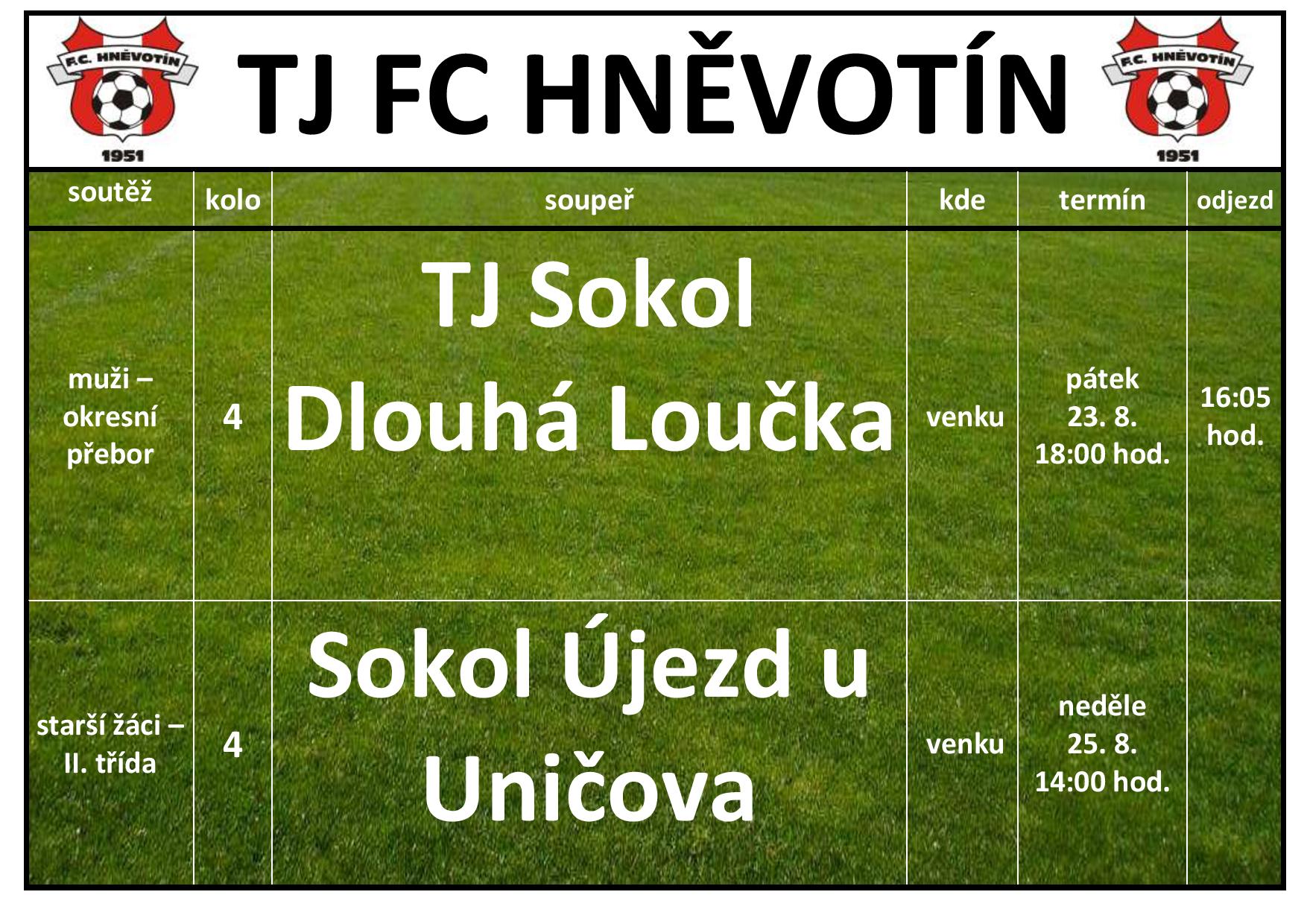TJ FC HNĚVOTÍN zápasy muži 23.8.2024 a 25.8.2024