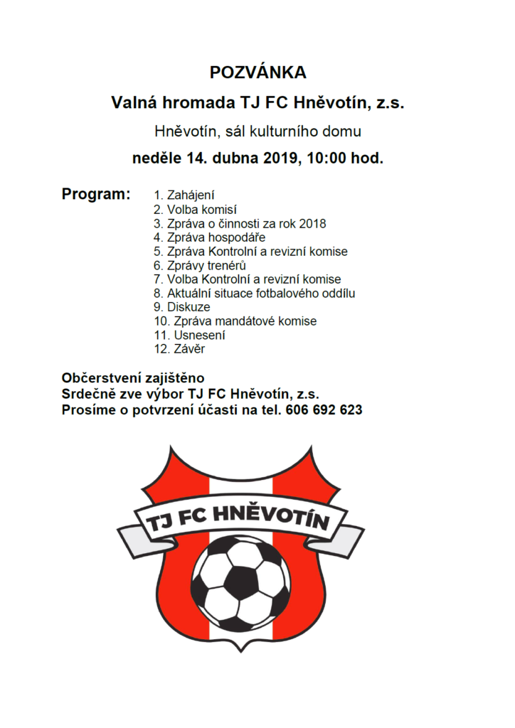 Valná hromada TJ FC Hněvotín, z.s.