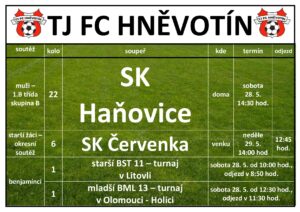 TJ FC HNĚVOTÍN víkend 21.5-22.5.2022