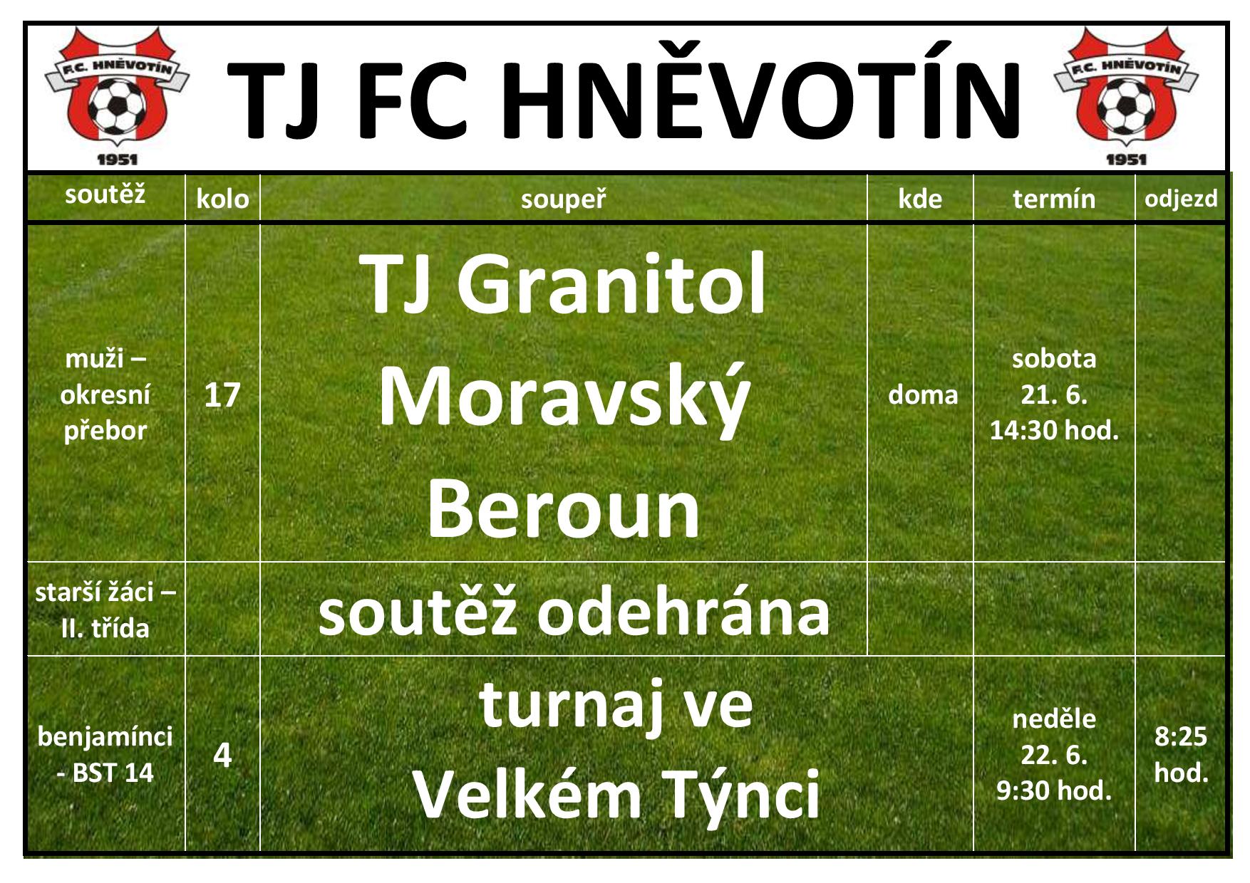 TJ FC HNĚVOTÍN víkend 21.6.2025-22.6.2025