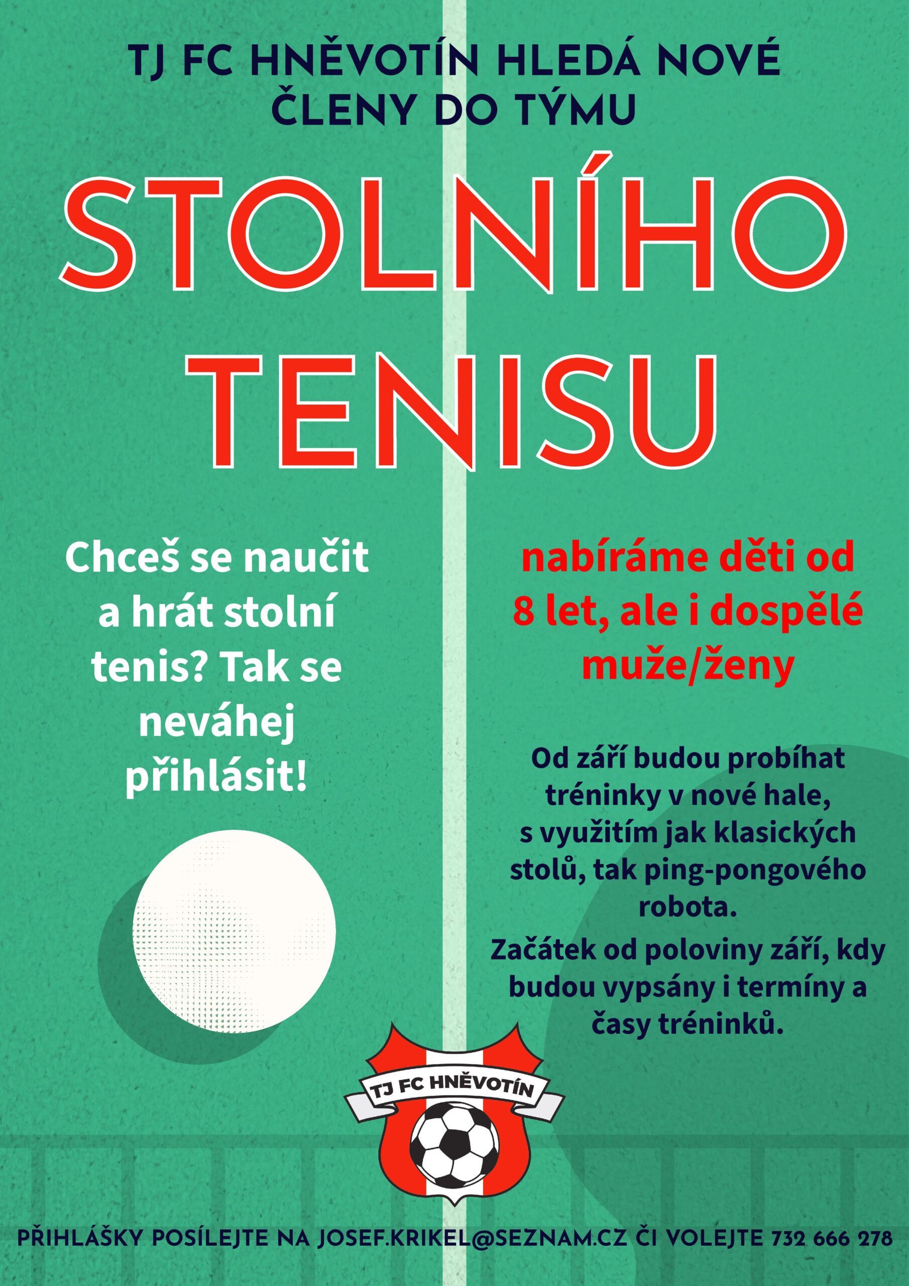 TJ FC Hněvotín stolní tenis Pavel KrytinářSportovní aktivity0 TJ FC Hněvotín hledá nové členy do týmu stolního tenisu