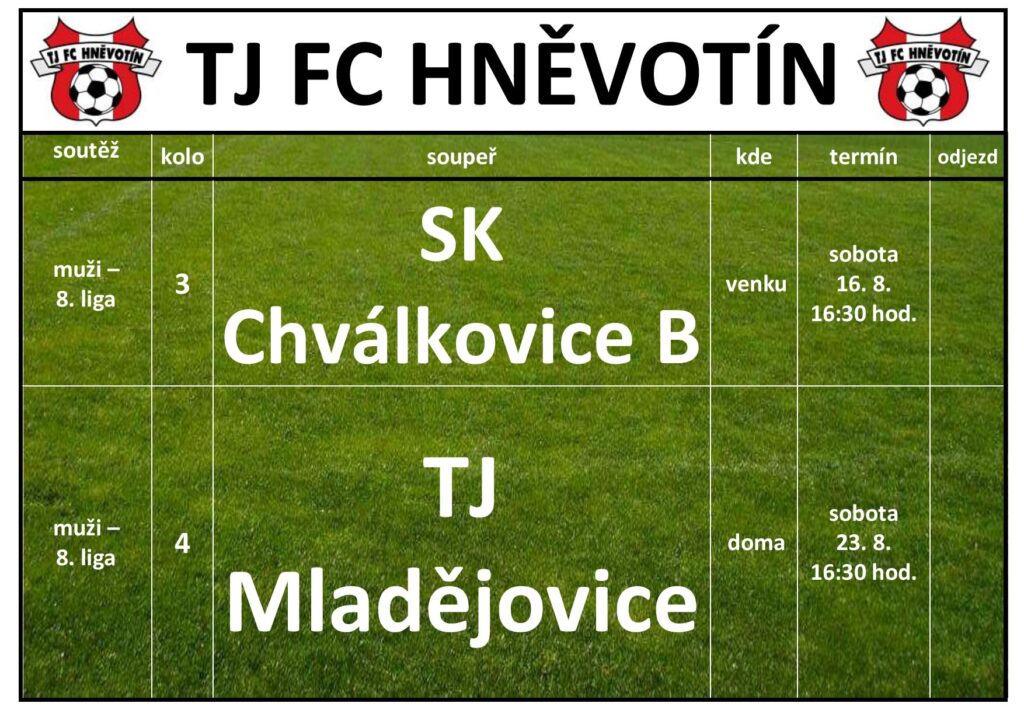 TJ FC HNĚVOTÍN muži 16.8.2025 a 23.8.2025