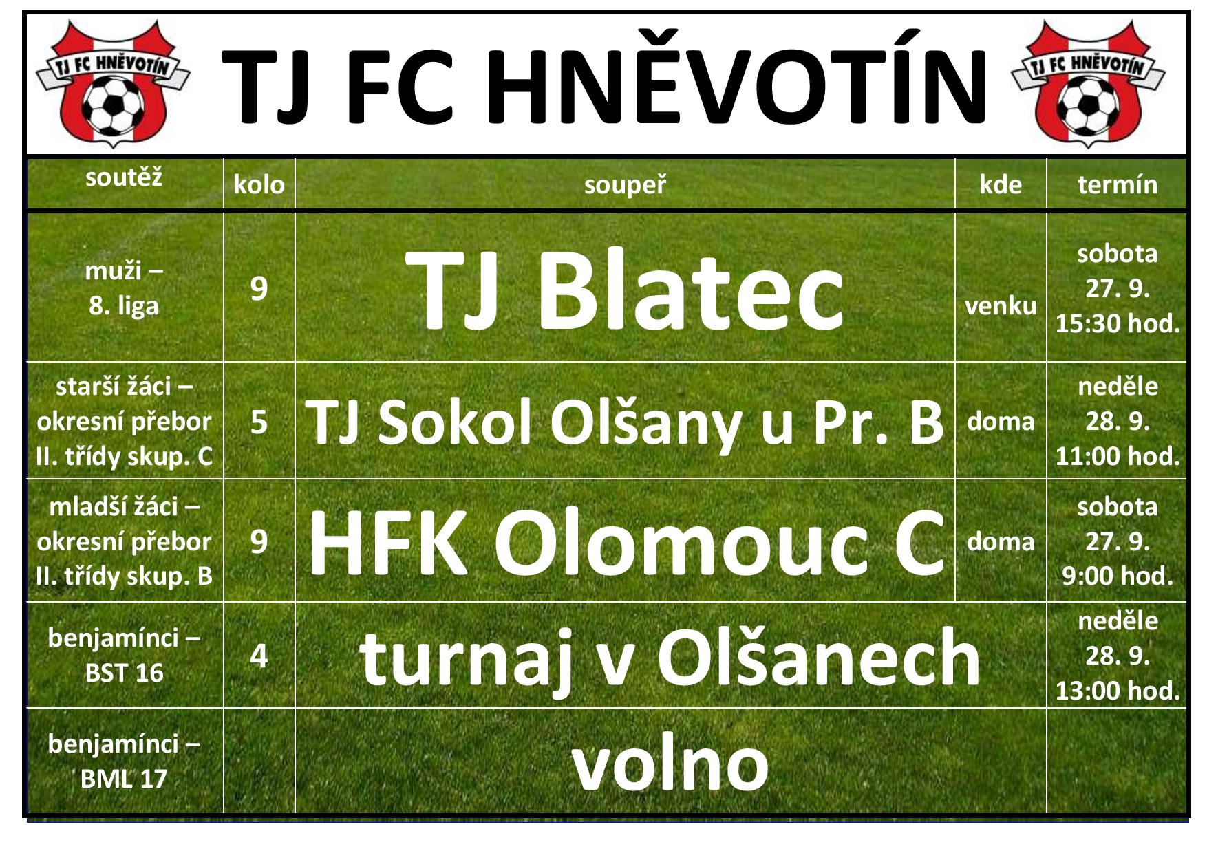 TJ FC HNĚVOTÍN víkend 27.9.2025-28.9.2025