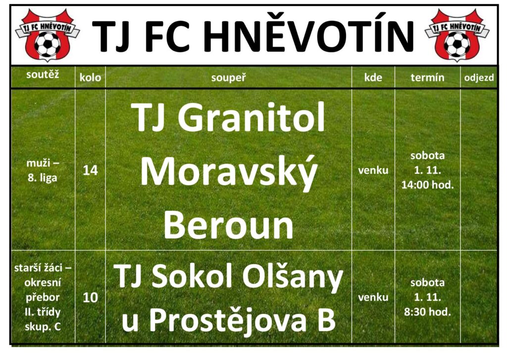 TJ FC HNĚVOTÍN víkend 1.11.2025-2.11.2025